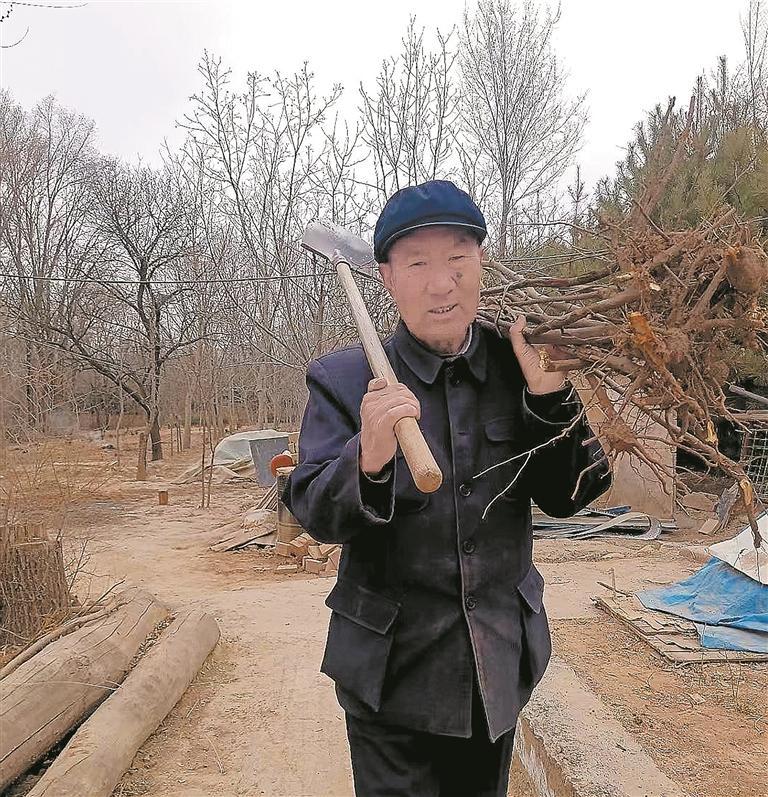 8棵樹全活了。1996年春天,馬進才又找來十幾棵樹苗。“等到60歲,我要種活60棵!”從此,春天栽苗,夏天抗旱,秋天修枝,冬天防寒。荒坡每多一分綠意,他腳下的步子就輕快一分。