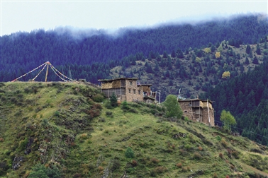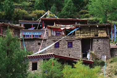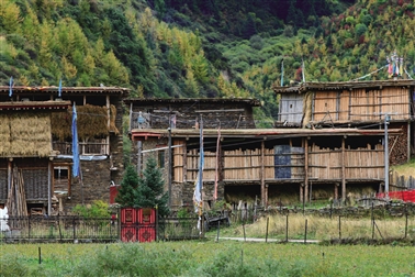 在徹底了解藏式碉樓之前,我們有必要先仔細(xì)看看村子的格局,因?yàn)榈飿堑倪x址與村子的格局有著密不可分的聯(lián)系。它們或沿地勢平坦的瑪柯河畔修建,或依山就勢成階梯狀修建,整個(gè)建筑群與山水間形成了一幅優(yōu)美的山水畫卷。