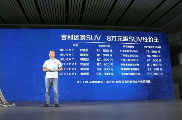 吉利汽車銷售公司副總經理南圣良公布價格