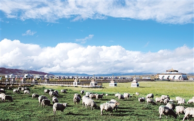 成群的羊兒宛如散落在人間的珍珠,或多或少,就像是走進了一幅渾然天成的油畫中。羅連軍李勇/攝
