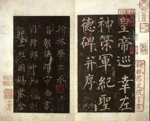 柳公權( 778-865年 ),是唐朝最后一位大書法家,京兆華原(今陜西耀縣)人。宮至太子少師,故世稱“柳少師”。他二十九歲進士及第,在地方擔任一個低級官吏,后來偶然被唐穆宗看見他的筆跡,一時機為書法圣品,就被朝廷召到長安,那時,柳公權已四十多歲。穆宗嘗問柳公權用筆之法,公權答云:“用筆在心,心正則筆正。”時穆宗荒縱,為之改容,悟其筆諫也。他的字在唐穆宗、敬宗、文宗三朝一直受重視,他官居侍書,長在朝中,仕途通達。他書法初學王羲之,后來遍觀唐代名家書法,認為顏真卿,歐陽詢的字最好,便吸取了顏,歐之長,自成一體。他的字取勻衡瘦硬,追魏碑斬釘截鐵勢,點畫爽利挺秀,骨力遒勁,結構嚴謹,有著“顏筋柳骨”的說法。“書貴瘦硬方通神”他的楷書,較之顏體,則稍均勻瘦硬,故有“顏筋柳骨”之稱。 柳公權享年八十歲,一共臣事七位皇帝,歷唐代宗大歷十三年(公元778年)——唐懿宗咸通六年(公元865年),最后以太子少師死于任上。
