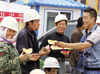 團(tuán)結(jié)社區(qū)居委會工作人員慰問工地工人