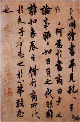 歐陽詢以楷書著名,其實他的行書也很出色,其中以《夢奠帖》為最佳。《夢奠帖》全稱《仲尼夢奠帖》。郭天錫在跋中曰:“此本勁險刻歷,森森然如武庫之戈戟,向背轉折深得二王風氣,世之歐行第一書也!