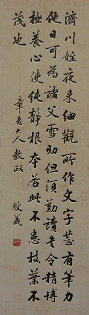 藝術簡歷: 保守忠(1889-1944),筆名:保卿,字綬清、綬義,號忠義老人。青海樂都人,出生于一個半耕半讀,比較富裕的家庭。自幼聰穎,勤奮好學。幼入私塾,誦讀四書五經,筆耕不輟,經年臨寫古代碑帖。后入樂都鳳山書院,是清末通過科考的舉人。后入保塔學堂教書,中年時已形成自己的書風,是當時鄉里很有名氣的書法家,真草隸篆四體皆能,文章書法聞名于鄉里,具有很高的威望。其書法師古不泥,取法自然,上追二王,下摹唐宋,及元明清大家。他的書法,凝重灑脫,豐腴遒勁,端莊肅穆,雍容華貴,雄健沉穩,雄渾之貌有如龍游潛底之姿。初觀其字有一種與眾不同,古人風貌緩緩欲來之感。尤其是科考時的習字卷文,細細品之柔美無比,剛性十足,奧妙精煉,耐人尋味,親切感油然而生。就存世作品來看,清峻峭拔,舒展遒媚,韻味十足,縱行直如大道,橫行不拘于平齊而略有參差,天地基本保持水平,章法格局沉穩有致,構思高妙,給人以嚴謹中富有變化,俊逸不失端莊厚美之感。古樸圓潤,頓挫提按盡顯筆底,筆勢精妙,法度謹嚴,方圓結合,含而不露,深得傳統書法之精髓。