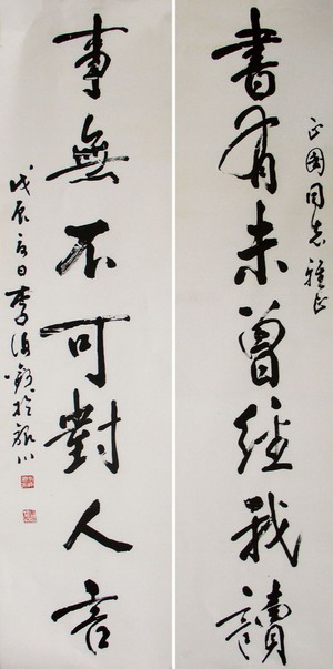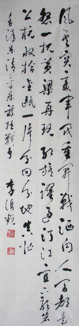 藝術(shù)簡歷:李海觀,原名希濤。男,漢族,1920年5月生,青海西寧人。1944年畢業(yè)于國立西北師范學(xué)院。任青海省立西寧中學(xué)校長多年。幼受叔父李德院,淵影響喜愛書法,以唐楷為宗學(xué)歐、顏、柳以及元趙、清張上溯"二王",草書寫左軍、孫過庭,隸書習(xí)《曹全碑》、《三老碑》。所作行楷端嚴(yán)秀潤。草書筆勢奔放,遒勁灑脫。 作品入選全國第一、二屆書法篆刻展覽、鄭州"國際書法展"、開封"國際臨書法展"、1980年在日本舉辦的"中國明、清、現(xiàn)代書法展"等。為博物館、紀(jì)念館及汕頭韓文公祠、武漢黃鶴樓、四川陰靈山、開封翰園、韓城司馬遷祠等收藏或被勒石。熱心書法教育和社會活動,參與籌組中國書法家協(xié)會青海省分會及西寧市書法家協(xié)會。曾為中國書法家協(xié)會理事,青海省書協(xié)名譽(yù)主席,國家教委書法教育研究會理事。