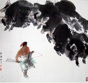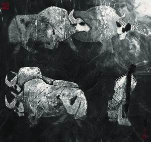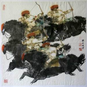 馬西光的學(xué)養(yǎng)深厚,既有扎實(shí)的造型能力,又有傳統(tǒng)的筆墨功夫。他創(chuàng)造的“拓墨皴法”,已經(jīng)發(fā)展成為一種新的繪畫語言,他駕馭的鴻篇巨制,整體的恢宏氣勢,人物的多彩多姿令人震懾;他的作品有一種返樸歸真的野趣和難以明言的精神上的震撼性與穿透力。他的創(chuàng)作心態(tài)是開放的,敢于大膽吸收外國現(xiàn)代藝術(shù)中的一些觀念、精神、觀察與構(gòu)成方法,但他又不從外部形式去作機(jī)構(gòu)地模仿;在他顯示著深厚現(xiàn)代文化意味的作品中,內(nèi)涵著東方的藝術(shù)精神、東方的抽象意識,飽含著鮮明的民族性。