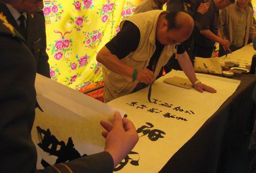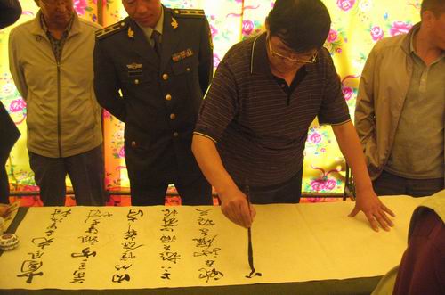 此次書畫交流緊緊圍繞“喜迎十八大”、慶祝建軍85周年這一主題,各位書畫名家創作了《沁園春雪》、《浪淘沙》等精美書法繪畫作品100余幅,既熱情謳歌了人民軍隊成立85年來的光輝成就,又表達了對扎根高原、無私奉獻消防官兵的崇敬之情。支隊官兵一致表示,將以此次書畫交流為動力,繼續發揚海北消防“六種精神”,堅守十八大消防安保第一線,為海北的社會經濟發展保駕護航。(來源\海北州公安消防支隊文\袁軍郝鵬舉)