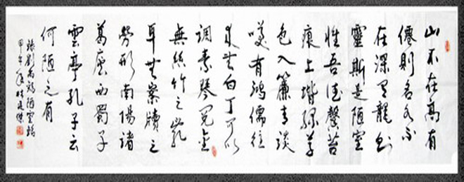 愛好書畫藝術、勤于研修,在創作過程中善于汲取前人經驗和藝術精華,師古不泥,大膽創新。經反復錘煉、逐步形成自己獨特的藝術風格。主張“藝術源于生活”,擅長觀察思考、提煉、升華,從平凡的生活中挖掘素材,并獲得創作靈感,創作出大量為人稱道的優秀作品,取得相當高的藝術成就。其作品雍容大器、古樸雋永;氣勢磅礴,意蘊悠長,深受大眾乃至國際友人的喜愛,具有較高的藝術品位。在新世紀全國人民奔小康的過程中,發揚光大中華文化,努力踐行“三個代表”在文藝領域中的重要思想;在文化大繁榮大發展的大好形勢下,始終堅持藝術創作的先進性,把握文化思潮的主流方向。在文藝交流、研究方面作出了應有貢獻。