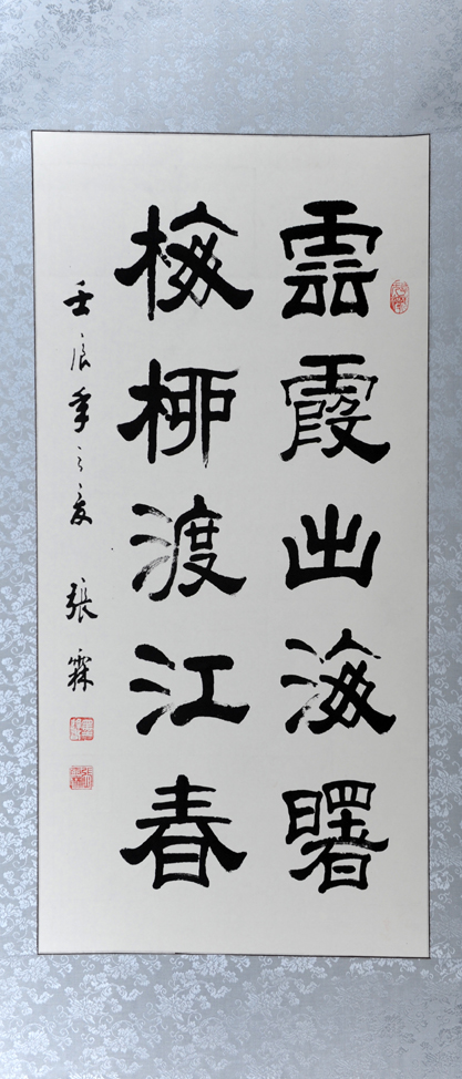 張霖,男,漢族,1937年5月出生,青海西寧人,經(jīng)濟師,從小秉遵父誡,學(xué)習(xí)書法,堅持臨帖習(xí)筆,先摹柳兼學(xué)歐、顏、趙諸家碑帖,后學(xué)習(xí)我省著名書法家李德淵先生書體,涉筆成趣,自成風格。現(xiàn)為中國書畫家協(xié)會會員、北京東方名家書畫院高級專業(yè)書畫家、青海省書法家協(xié)會會員、中國書畫院青海分院副院長、青海老干部書畫學(xué)會常務(wù)理事、青海老年藝友會副會長、青海昆侖文化藝術(shù)研究院常務(wù)理事、西寧市老干部書畫詩詞學(xué)會會長。書法作品在省內(nèi)外大賽中屢獲獎項,部分作品由省圖書館及西寧市檔案館收藏。2006年入選《中國現(xiàn)代書畫篆刻界名人錄》,2008年紀念周恩來誕辰110周年全國書畫大賽中獲一等金獎,并編入《現(xiàn)代書畫家愛國妙墨大典》、2009年全國少字大賽獲金獎,作品編入《書圣杯當代少字書法雅集》,2010年全國和平碑林書畫大賽中獲特等獎,入編《為了和平大型碑林書畫作品集》。