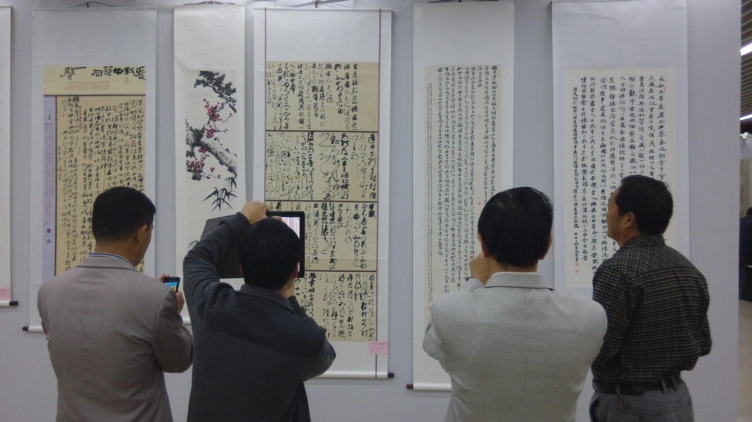 展廳里,記者看到有不少心急的書畫愛好者等不及開幕式結束,就紛紛涌向展廳,或細細品鑒,或拍照留存,偌大的書畫展廳內,處處洋溢著過節(jié)—般的熱鬧氣氛。—幅幅書畫精品,或雄奇峻秀、含蓄深沉,或氣勢超絕、飄逸空靈,或色彩分明、筆墨生辣……步移畫異,墨香撲鼻,觀者贊不絕口。