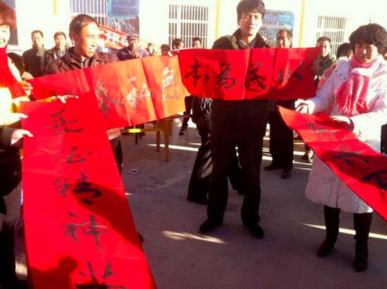 (本網(wǎng)記者 陳文淵 攝影報道)新年伊始,為豐富廣大農(nóng)村群眾春節(jié)期間的精神文化生活,青海省體育局、環(huán)湖賽全國書畫大賽組委會和青海江源民族書畫院積極行動起來,精心組織“文化建設塑農(nóng)村新貌,墨香和諧繪綠色家園”廉政文化進農(nóng)村活動。1月19日下午,青海省體育局聯(lián)合環(huán)湖賽全國書畫大賽組委會和江源民族書畫院等全國具有名望的書畫界人士等一行人來到海東市互助縣西山鄉(xiāng)和平村,為村民送去新春春聯(lián)和“福”字。