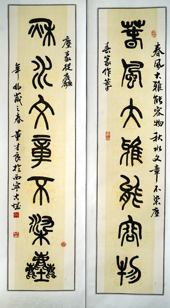 董才良,1944年5月生,陜西石泉人,原西寧市文聯書畫專業干部,西寧市第十三屆政協委員,現為中國書法家協會會員,中國攝影家協會會員、中國美術家書法家協會榮譽理事、青海省老年大學終身教授、中國書畫名家協會青海創作基地顧問團主席、西部蘭亭書畫院顧問團主席。中國美術家書法家協會青海基地顧問團主席。他自幼酷愛書畫、篆刻。1962年參軍到青海,16年的軍旅生涯,使他逐步成長,轉業后分配到青海登山協會工作。1981年調入西寧市文聯,分管美術、書法、攝影工作。1982年他南下蘇州,拜著名書法家沙曼翁為師,1985年考入首都師范大學中國書法藝術專業,師從歐陽中石、康殷先生。在校期間與教授歐陽中石先生合著《篆書淺涉》一書,由北京寶文堂書店正式出版。他涉獵廣博,對文字學著力甚勤,對篆、隸、真、行、草均認真臨學,其作品氣格淳雅,筆致流動自然,追求古樸靈動之趣。他的作品參加了“第二屆全國書法篆刻展”、“國際和平年書畫攝影展”、“第四回日本產經書法展”等國內外大展。曾被“中國書畫家大辭典”、“中國篆刻家大辭典”、“中國書法大成”等大型辭書收錄。