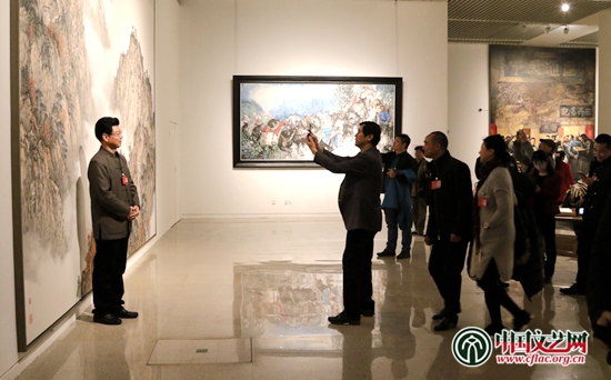 11月30日晚,中國文聯第十次全國代表大會、中國作協第九次全國代表大會的部分代表集體參觀了正在中國國家博物館展出的中華史詩美術大展。濃墨重彩、恢弘壯觀的美術作品給代表們帶來了極大的藝術震撼。中華史詩美術大展是由中國文聯、財政部、文化部共同主辦的“中華文明歷史題材美術創作工程”的成果呈現,運用造型藝術形式圖寫中華民族五千年文明歷史,表現形式涵蓋中國畫、油畫、版畫和雕塑四個種類;精選各歷史時期最重要的文化現象與歷史事件;作者隊伍近300人,經過5年多的共同努力,最終創作完成146件(幅)作品。代表們紛紛表示,這樣的大規模歷史主題性美術創作實踐對于表現中華文明的源遠流長和燦爛文化的博大精深具有深遠意義,經得起人民的檢驗和歷史的考驗,讓我們更加堅定文化自信,理直氣壯邁向未來。