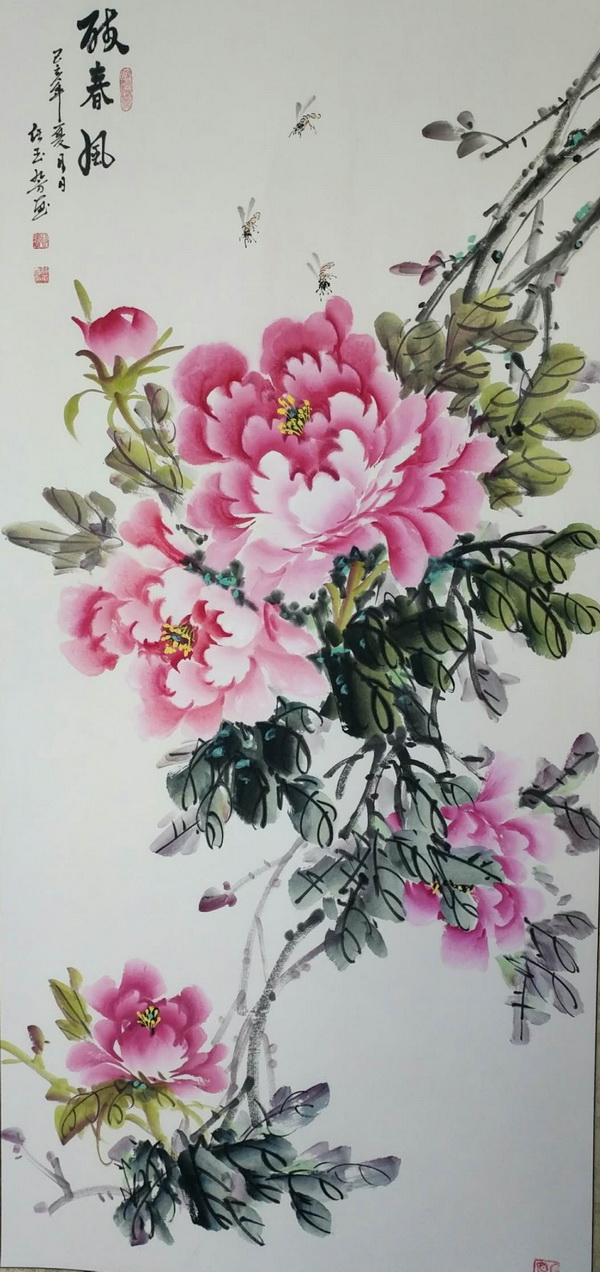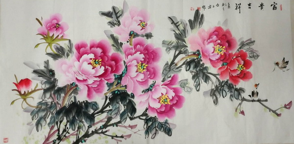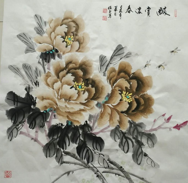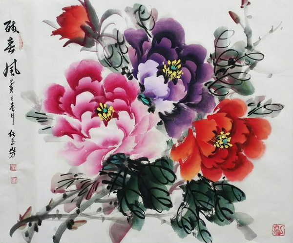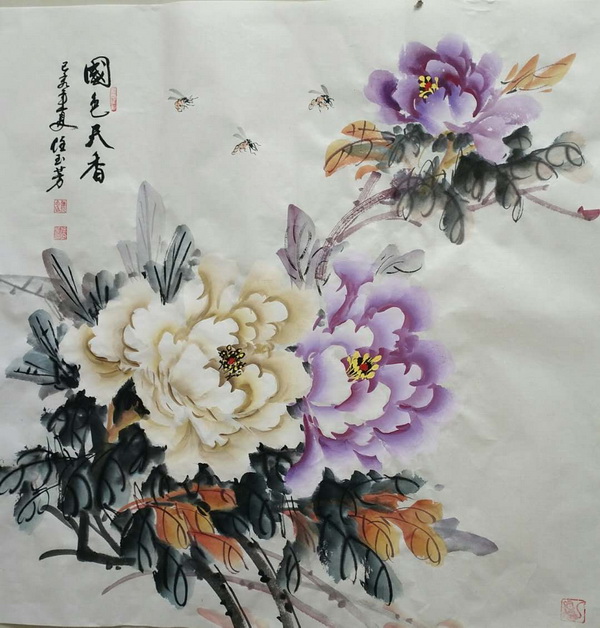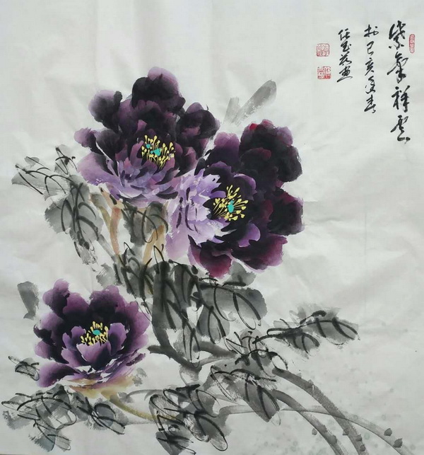 高原牡丹溢香萬里,看了任玉芳老師的畫作牡丹,猶如身臨牡丹叢中,多姿的花瓣艷麗奪目,片片飄香,在茂葉和枝干的襯托中,既透出淑女般的柔娟,又顯出巾幗之剛毅,大有傲立西北高原,驅風凌寒,妖艷含笑之美感。顯示出極強的生命活力。